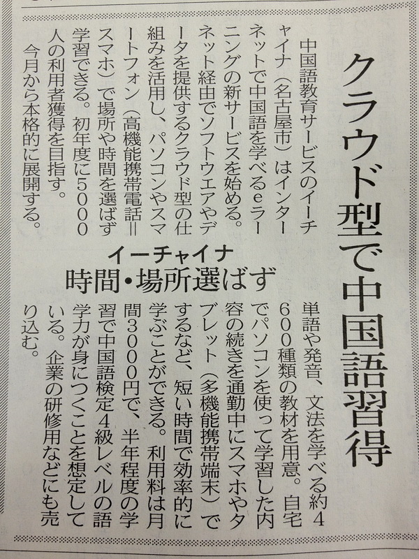 中国語eラーニング『スマチュ』日経MJにご紹介して頂きました