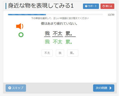 体験型の例文で実践レベルがすぐに上達、あなたの想像よりもラクに身につきます。自宅でゆっくりとコツコツ続けられる、あなたのPCが「プライベート中国語教室」です。